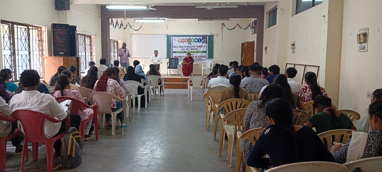 The serene and sprawling campus which spreads over a vast stretch of land measuring about 18.173 acres with lush gardens is in complete contrast to the choas of trafic prevailing outside the college . A fossil confier wood of Araucarioxylon Species of early jurrasic age(175 million years old) which was gifted to the college by the Geological Survey of india(Southern Region, Hyderabad). warmly welcomes any enthusiastic visitor to the college. Saifabad Science College renamed to PG College of Science in 1981 and again as University College of Science, Saifabad, OU in the year 2011-12.